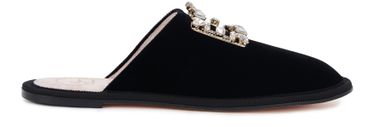: velvet shoe / crystal brooch buckle / leather sole
