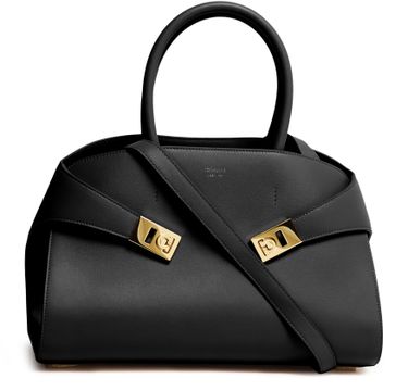Reveal Salvatore Ferragamo's Hug crossbody bag, a masterpiece crafted from smooth leather. The adjustable thin strap and visible topstitching enhance its functional elegance. With its gold finish, this shoulder bag perfectly embodies signature charm. Experience the blend of style and practicality in every detail.