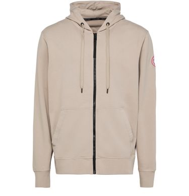 Canada Goose's Huron full zip hoodie offers a cozy experience with its adjustable drawstring neckline and long-sleeved design. The large hood shields you from the chill, while the zipper closure ensures a snug fit. With the logo on the side and at the back label, style meets functionality effortlessly.