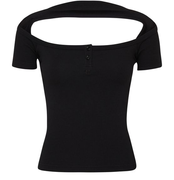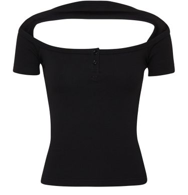 The Hyperbole snaps 90's rib top features a regular length perfect for versatile styling. This chic blouse showcases a logo at the back label for a touch of brand recognition. The front buttoned closure includes button fastening for convenience. With short-sleeves and a round neck, this top is a trendy and sophisticated choice.