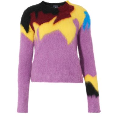 Embellished with delicate patterns, this round-necked Intarsia sweater is a piece with long sleeves and a fitted cut, signed on the back by Loewe's signature logo.