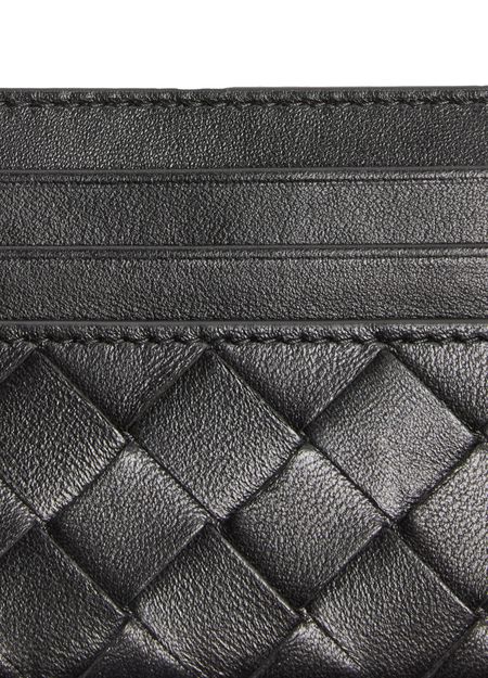 Bottega Veneta's Intrecciato credit cardholder showcases exquisite craftsmanship with its signature weave. Designed with interior slots for cards, it combines functionality with elegance. The visible topstitching adds a refined touch, making it a perfect accessory for those who appreciate luxury and practicality in their everyday essentials. Experience sophistication in simplicity.
