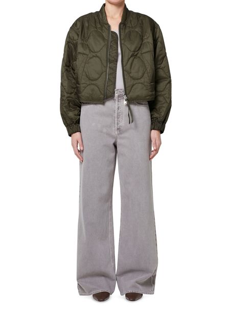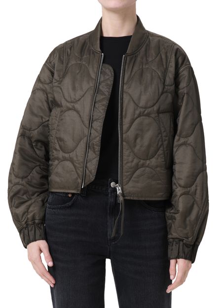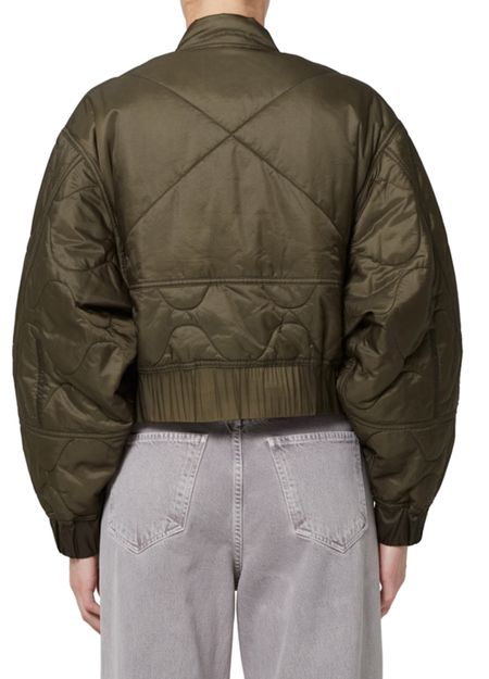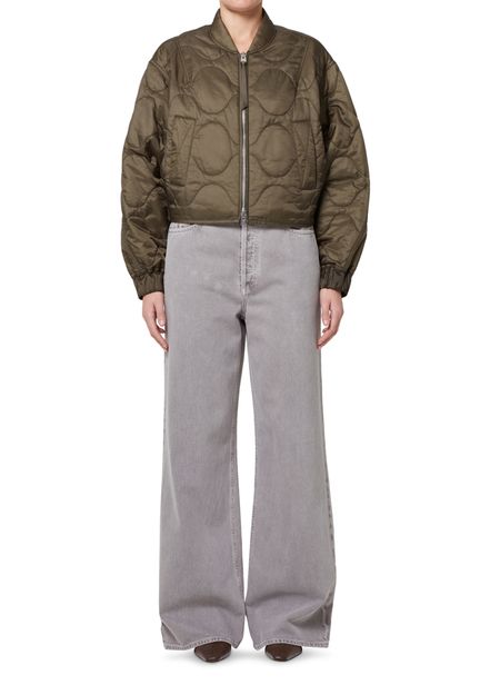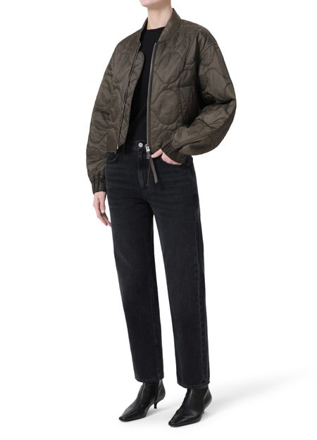 Introducing Agolde's Iona quilted jacket, a stylish bomber with an oversized crop fit. Featuring a high neck and long sleeves, this jacket combines comfort with a padded texture. The zipper closure and side welt pockets add a practical touch, making it perfect for any occasion.