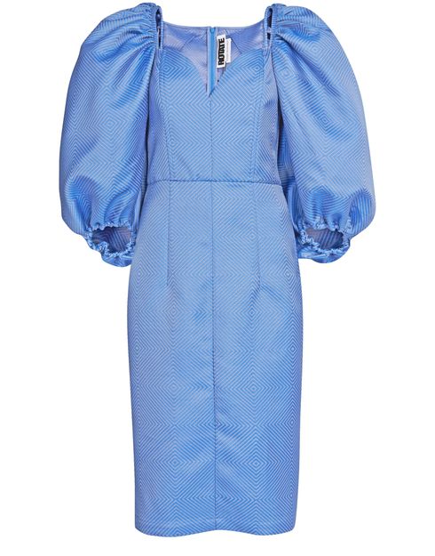 • Description : Dress with gigot sleeves, graphic compositions, all-over embroidery, zip fastening at the back, the brand's letter emblem, visible stitching.