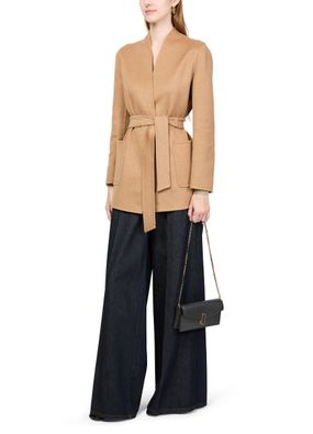 • Description : Clutch, shoulder bag, crossbody bag, chain strap, detachable strap, metallic logo on the front, grained leather, flap closure, twist lock closure, interior pocket.