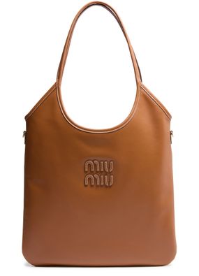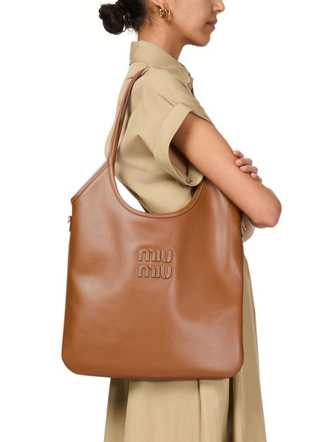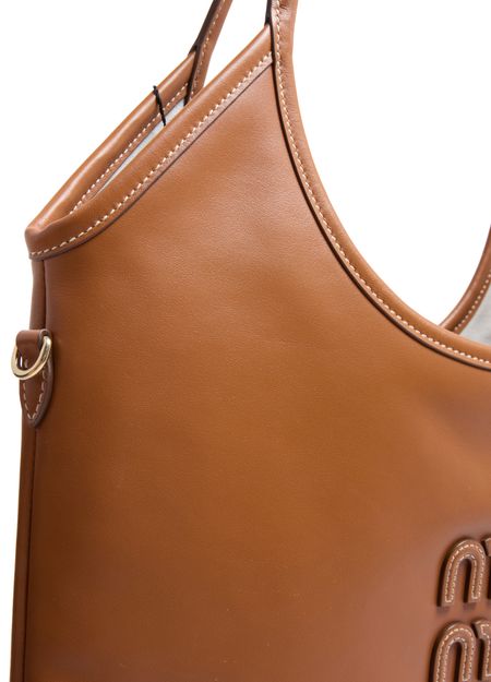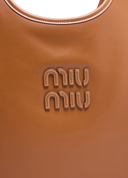 • Description : Shopper / tote bag, shoulder bag, embroidered "miu miu" logo, metallic "miu miu" lettering, smooth leather, double handles, large interior compartment, zippered interior pocket, contrast stitching, gold finish.