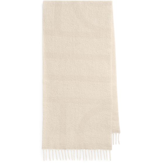 Reveal Toteme's monogram fringed scarf, where delicate fringed edges meet the brand's monogram for a refined statement. The all-over logo design adds a modern twist, making this accessory a standout addition to any contemporary wardrobe.