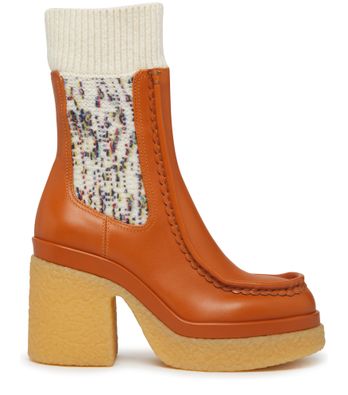 The Jamie boots from Chloé feature a bi-material design of smooth leather and scalloped edges. With a round toe and high-top upper, they have a pull-on design for easy wear. The boots also have a thick outer sole and block heel, combining style and comfort for a fashionable look.