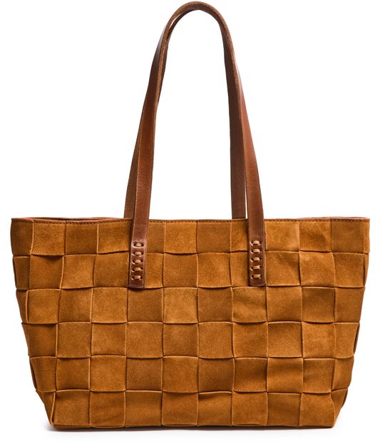 Reveal Dragon Diffusion's Japan tote bag, a masterpiece of style and functionality. Crafted from luxurious suede with a checked pattern, it features double handles and a spacious interior with a zippered pocket. The visible topstitching and zipper closure add a touch of sophistication to this elegant tote.
