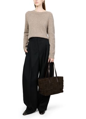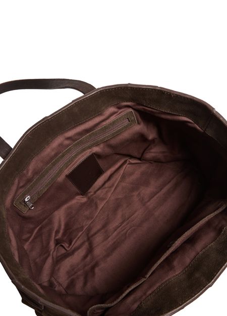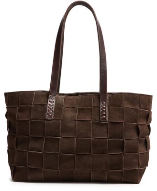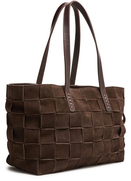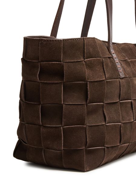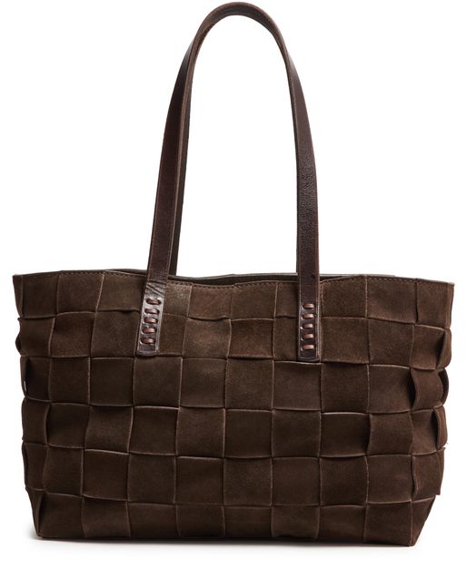 Reveal Dragon Diffusion's Japan tote bag, a masterpiece of style and functionality. Crafted from luxurious suede with a checked pattern, it features double handles and a spacious interior with a zippered pocket. The visible topstitching and zipper closure add a touch of sophistication to this elegant tote.