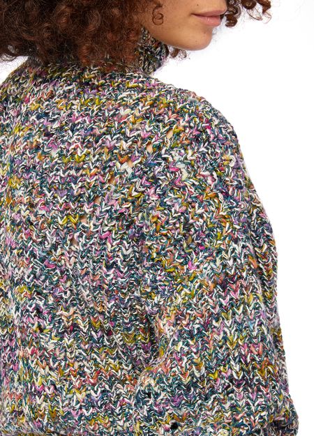 • Description : Knit sweater, mockneck, dropped sleeve, ribbed, long sleeve, marled material.