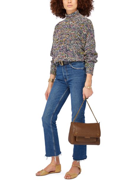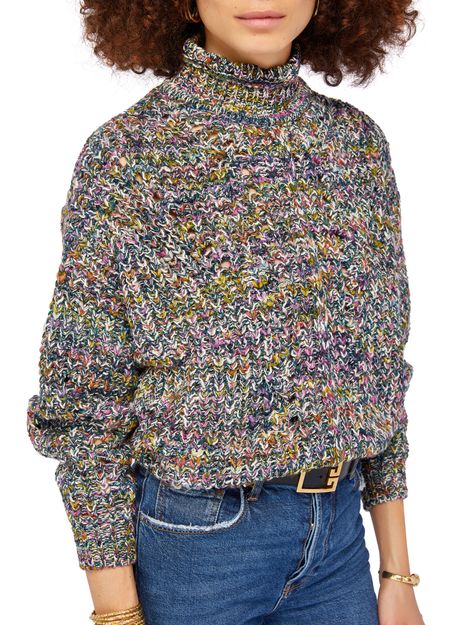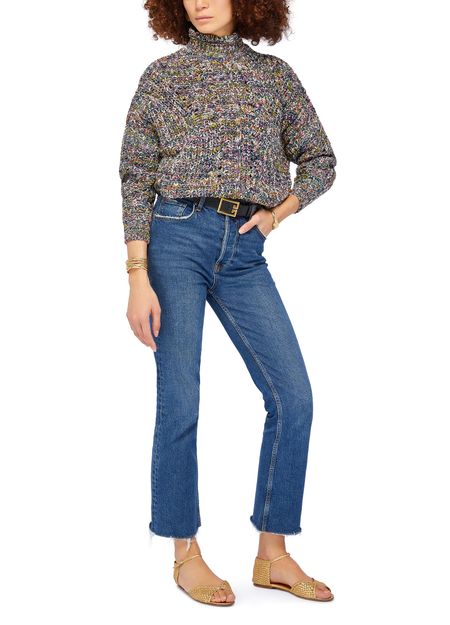 Isabel Marant Etoile Jarren high neck sweater is a cozy knit sweater with a mockneck and dropped sleeves. The ribbed texture and marled material add a touch of texture and interest to the design. With long sleeves, this sweater is perfect for cooler weather and can be dressed up or down for any occasion.