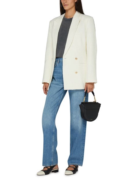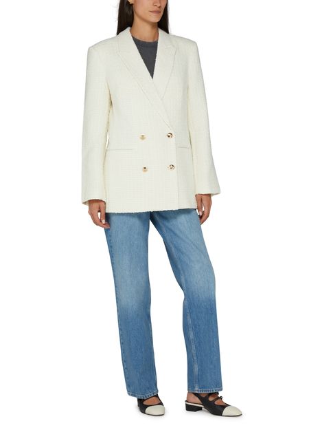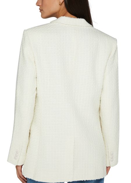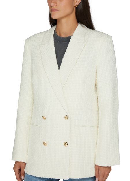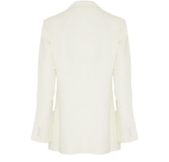 Description : 2 button, double-breasted, embellished buttons, gold finish, logo at the back label, appliquéd logo, notched collar, long, two front pockets, patch pockets.