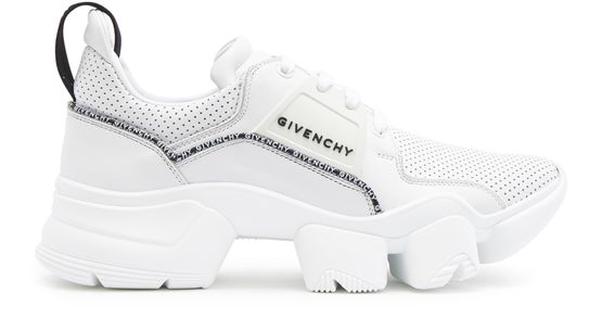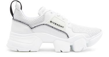 The House of Givenchy unveils a signature creation. These Jaw trainers feature an avant-garde and sophisticated style. The shape of the compensated sole is a very bold stylistic element. The logo can be found all around the edges, with a contrast and a subtle play on colours. Givenchy adds a trendy touch with a style that boosts the look. A model with a fascinating texture...
