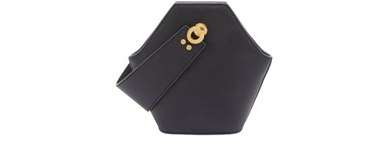 Mit dieser Tasche XS Johnny hat das Modehaus Danse Lente ein elegantes und entschlossen feminines Accessoire geschaffen, das durch seine hexagonale Form und seine grafischen Golddetails die Blicke auf sich zieht.