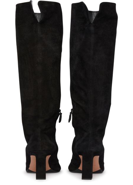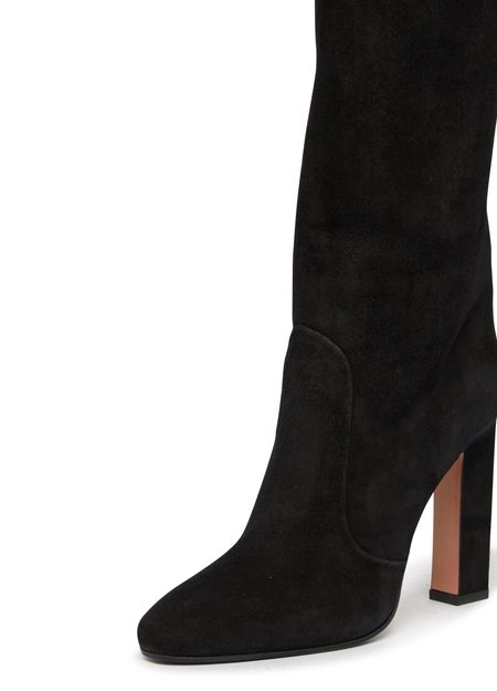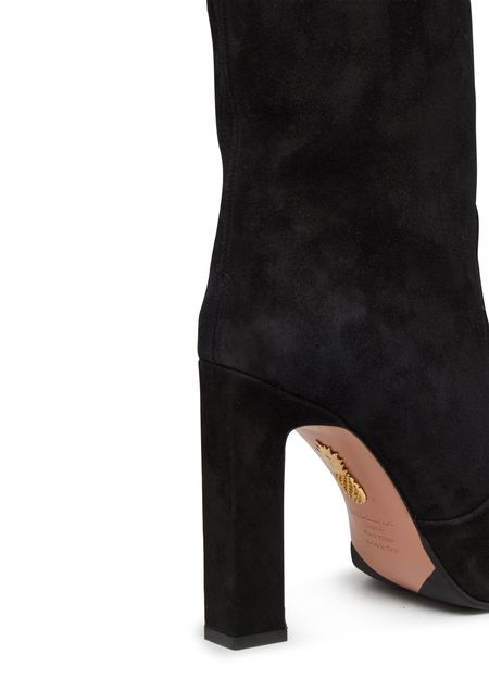 Aquazzura's Joplin 105 boots feature a classic round toe and high heel for a sophisticated look. These closed boots are designed with a side zipper for easy on and off, while the block heel adds both style and comfort. Perfect for adding a touch of elegance to any outfit.