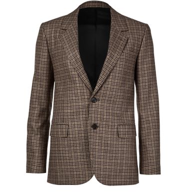 Celine's Jude checked cashmere flannel jacket is a timeless piece that exudes sophistication. With its two-button closure and notched collar, it effortlessly blends style and functionality. The long-sleeved design features flap pockets and two front pockets, making it perfect for both casual outings and elegant gatherings. Embrace classic elegance.