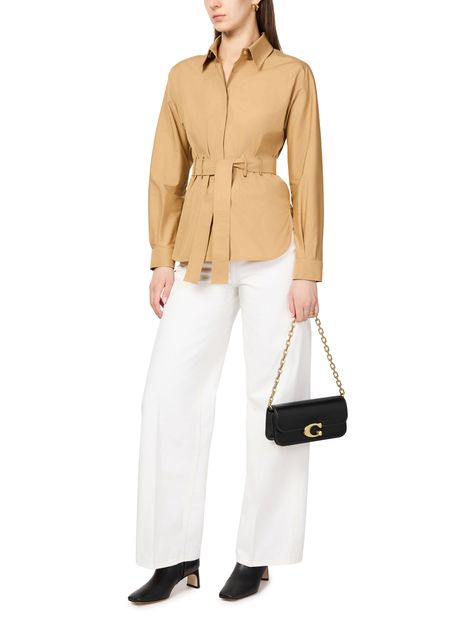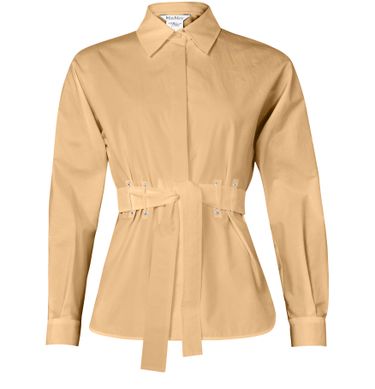Max Mara's Juglas cotton poplin shirt combines elegance and functionality. With a front buttoned closure and a classic shirt collar, it features long-sleeved cuffed sleeves and two front flap pockets. Visible stitching and an appliquéd logo add a refined touch, while the regular length ensures versatile styling for any occasion.