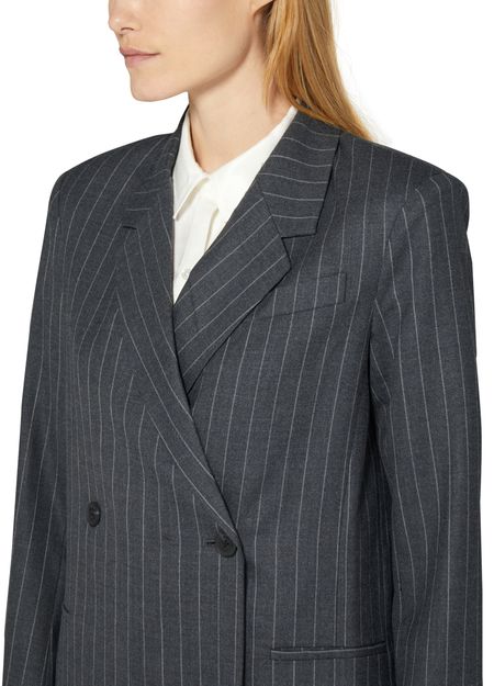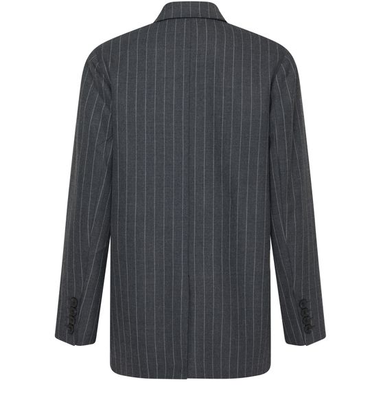 • Description : long-sleeved, logo at the back label, double-breasted, 2 button, two front pockets, welt pockets, breast pocket, striped print, notched collar.