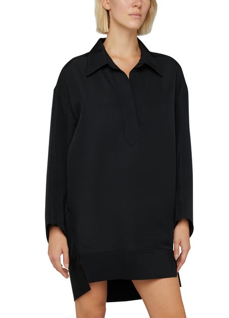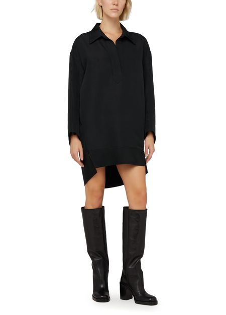 Khaite's Kal dress is a versatile and modern shirt dress with a unique twist. This short dress features front slits and is shorter at the front, creating a stylish and effortless silhouette. Its timeless design makes it perfect for any occasion, while its details add a touch of boldness to the look.