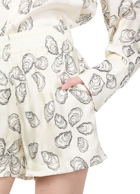 • Description : all-over print, visible stitching, short length, elasticated waist, high-waisted fit.