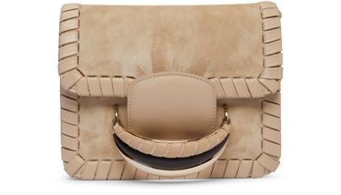 The Kattie mini bag from Chloé features a thin strap and flap closure. Its single compartment includes an interior patch pocket and embossed logo detail. This versatile bag can be hand-carried, worn on the shoulder, or across the body, making it a stylish and practical accessory for any outfit.