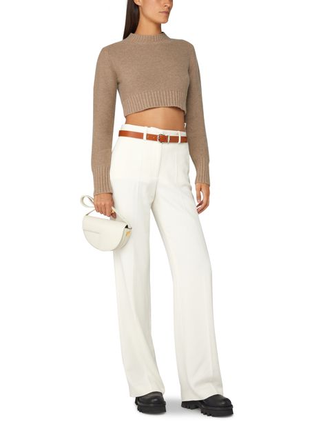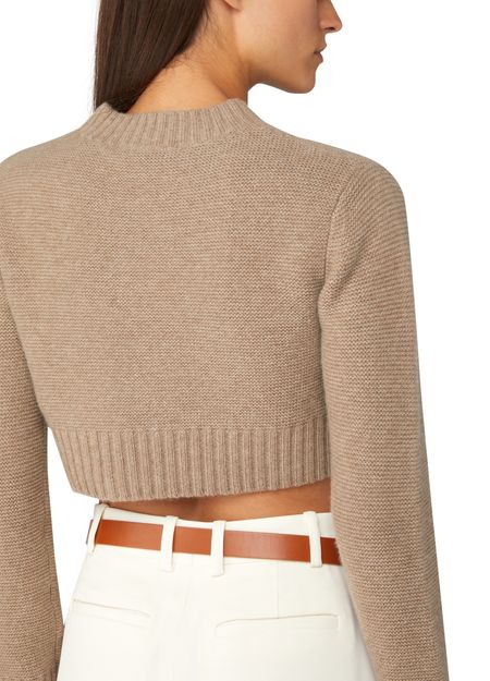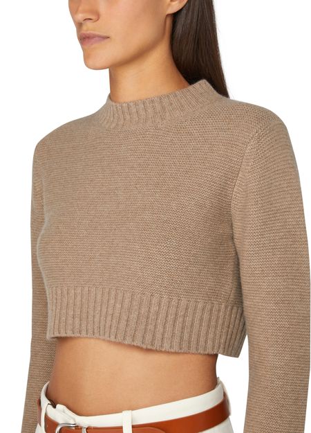Max Mara's Kaya cropped cashmere sweater is a luxurious addition to any wardrobe. This long-sleeved sweater features a tailored fit that flatters the figure. Very soft to the touch, it provides both comfort and style. The round neck and ribbed detailing add a touch of sophistication to this versatile piece.