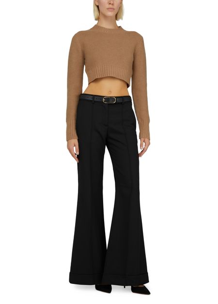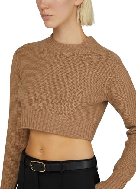 Max Mara's Kaya cropped cashmere sweater is a luxurious addition to any wardrobe. This long-sleeved sweater features a tailored fit that flatters the figure. Very soft to the touch, it provides both comfort and style. The round neck and ribbed detailing add a touch of sophistication to this versatile piece.
