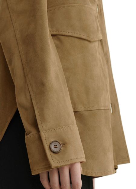 Reveal Arma's Kaylee suede jacket, a short silhouette crafted from supple suede with a refined button fastening. Long sleeves and flap pockets add both style and function, making this piece a versatile choice for elevating everyday looks or layering for evening outings.