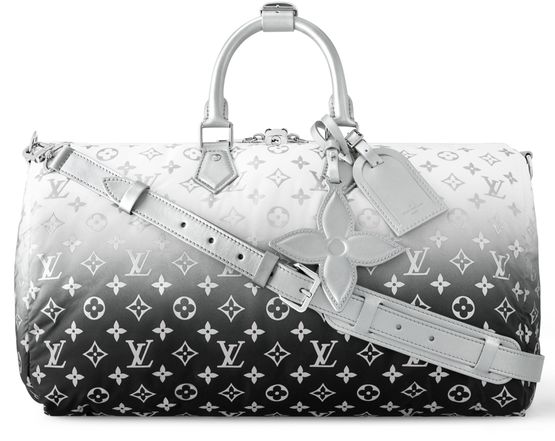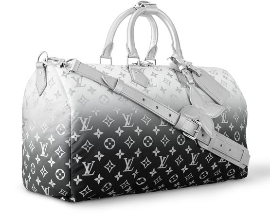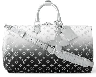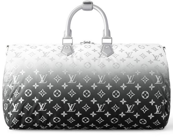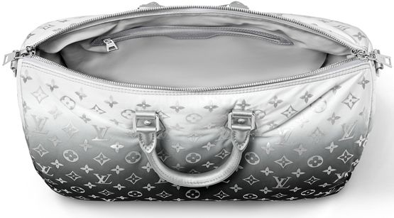 This Keepall Bandoulière 45 travel bag is made from gradient Monogram Nylon with its wintery feel and is adorned with a white-leather Monogram Flower charm. The recycled nylon is resistant and soft to the touch, making the bag very body friendly. The removable leather strap adjusts for shoulder or cross-body wear.