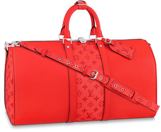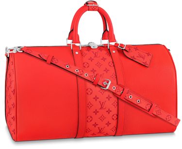 Fiery red Taiga leather is combined with Monogram canvas on this striking Keepall 50 Bandoulière bag, part of the Taigarama leather travel line. The canvas on the bag’s sides and front, in the same color as the leather, is only noticed at a second glance. This generously sized bag can be used as a cabin-friendly carry-on.