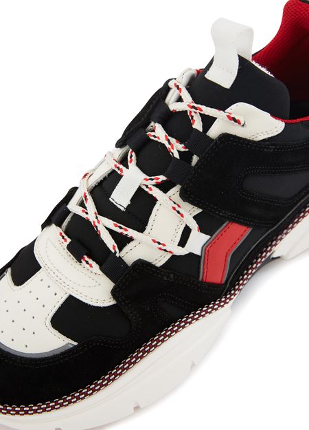 This model of trainers demonstrates an audacious combination of colours and textures. A laced creation in relief that displays the signature style of the label.