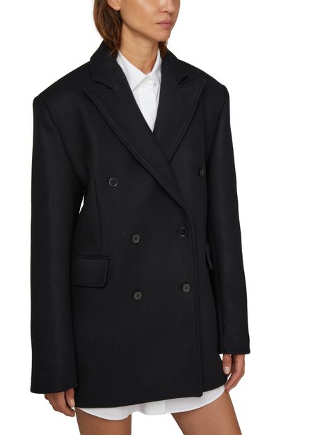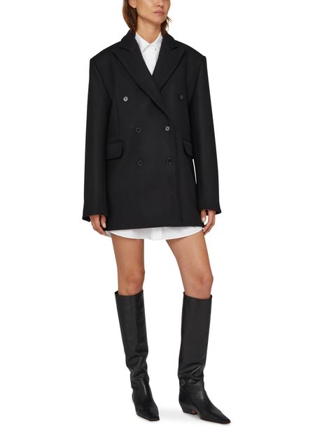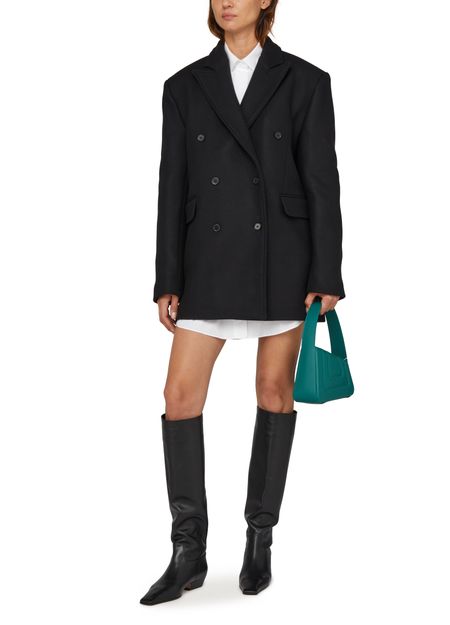 Loulou Studio's Koon wool coat boasts a straight, wide cut that exudes sophistication. Its tailored piqué collar and long sleeves enhance the elegant silhouette. With welt pockets for practicality and a double-breasted fastening, this coat effortlessly combines style and functionality, making it a timeless addition to any wardrobe.