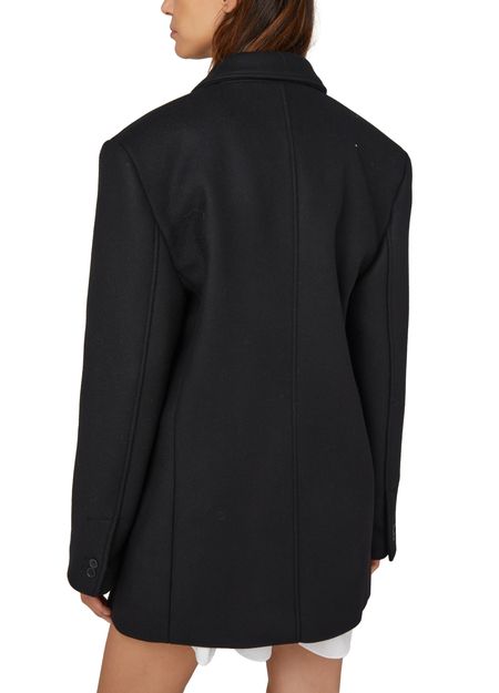 • Description : Blazer, straight, wide cut, tailored piqué collar, long sleeves, welt pockets, double-breasted fastening.