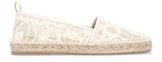 These lace espadrilles by Chloé are a delight down to the smallest detail, from the refined logo pattern to the stitching that punctuates their cord sole.