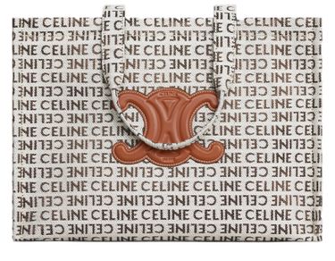 Celine's Large cabas Thais is a stunning textile bag adorned with the brand's all-over logo, making it a statement piece. The appliquéd logo on the front adds a touch of sophistication. With double handles for hand carrying or shoulder wear, it features interior patch pockets for effortless organization.