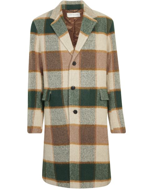 Dries Van Noten is proud to present this generously cut coat with colored checks. This piece with a straight maxi cut combines a button fastening with an elegant collar with revers.