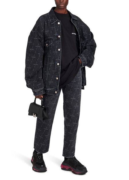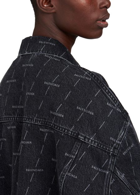 With its wide cut and all-over logo design, this cropped jacket has very contemporary accents. An ultra-structured piece created by Balenciaga.