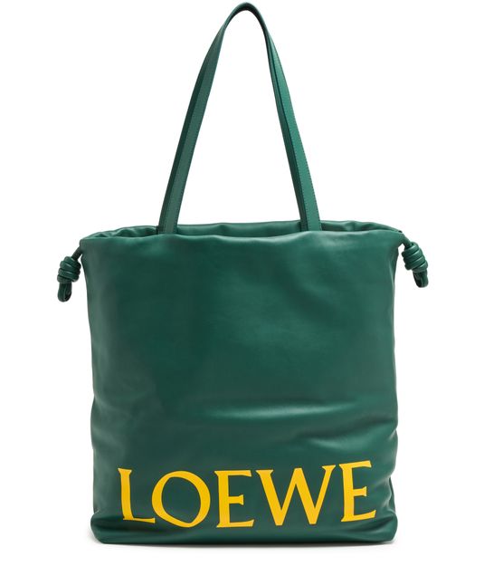 Loewe's Large Flamenco in nappa calfskin leather is a stylish shopper bag, worn on the shoulder or carried by double handles. Its magnetic closure secures a spacious single compartment, while the zippered interior pocket keeps essentials organized. Visible topstitching and a printed logo add a touch of elegance.