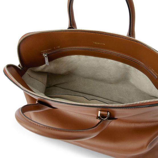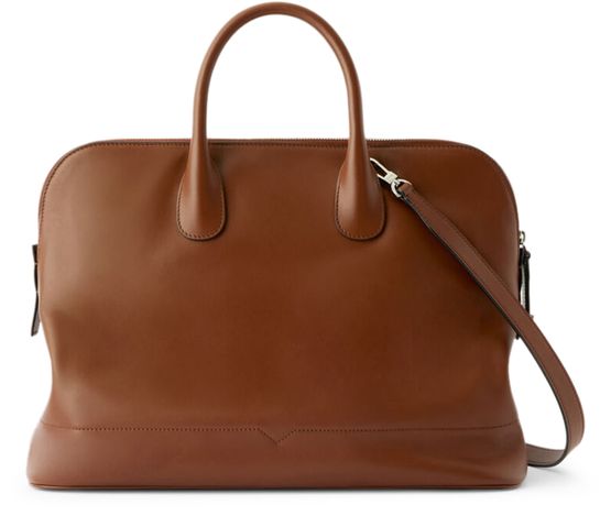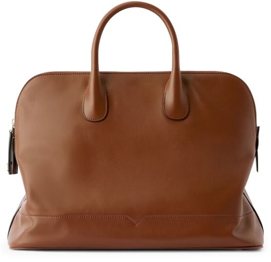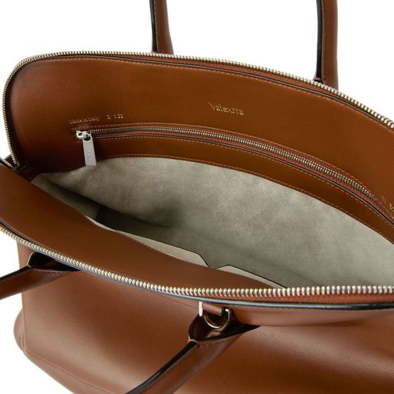 Reveal Valextra's crossbody bag, crafted from smooth leather with double handles and a thin, detachable strap for versatile wear. The spacious interior features a zippered pocket and patch pockets, while visible topstitching and a silver finish add a refined, modern touch.
