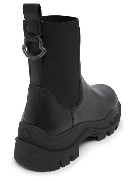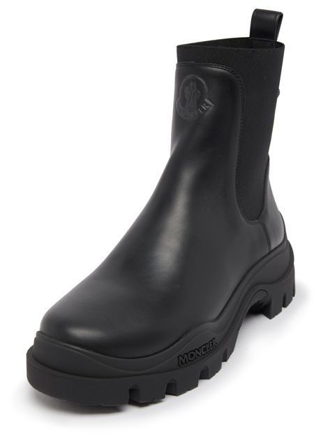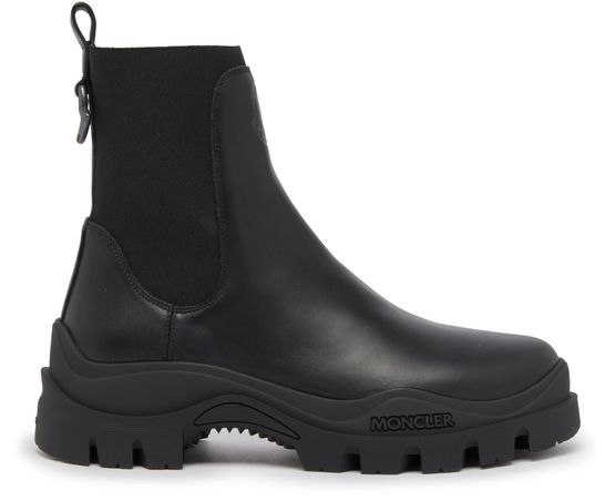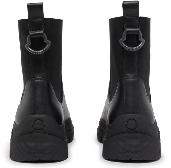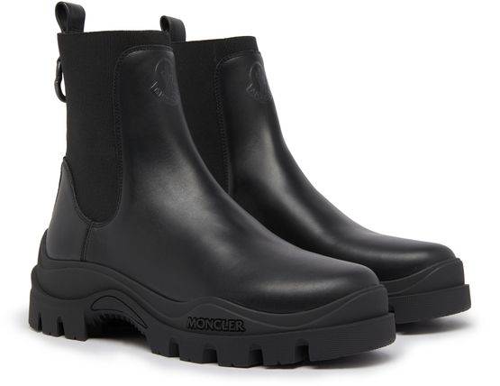 Moncler's Larue Chelsea boots feature a thick, notched sole for durability and stability. The elasticated sides and back loop allow for easy slipping on and off. They also include contrast details and a logo heel for added style. These boots are a timeless and versatile addition to any wardrobe.