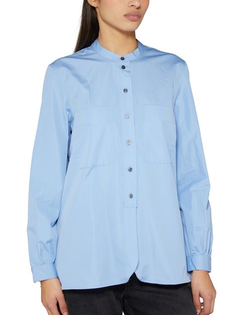 Description : front buttoned closure, button fastening, logo at the back label, two breast patch pockets, long-sleeved, high-neck, cuffed sleeves, mandarin collar, buttoned cuffs.