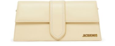 The Jacquemus The Long Bambino bag is a long flap bag that can be worn on the shoulder with ease. It features a leather handle and a metallic logo on the front, with gold finishes adding a touch of luxury. The interior pocket provides ample space for your essentials, making it a practical yet stylish accessory.