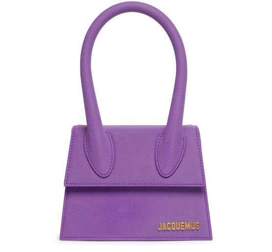 The Jacquemus Le Chiquito Moyen bag is a medium-sized bag made of smooth leather. It features a handle for easy carrying and a flap closure to keep your belongings secure. The logo is displayed in gold letters, adding a touch of elegance. This bag is perfect for those who prefer to wear their bags in their hand.