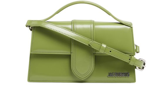 Le Grand Bambino is a versatile and stylish handbag made of smooth leather. It features a top handle, thin strap, and flap closure for easy access. The metallic logo on the front adds a touch of luxury. With visible stitching, it can be hand carried, worn on the shoulder, or crossbody for a chic look.