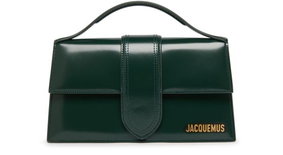 Le Grand Bambino is a versatile and stylish handbag made of smooth leather. It features a top handle, thin strap, and flap closure for easy access. The metallic logo on the front adds a touch of luxury. With visible stitching, it can be hand carried, worn on the shoulder, or crossbody for a chic look.