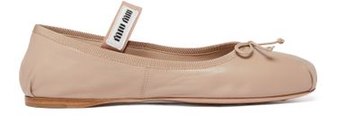 Miu Miu's leather flat ballets feature a closed, round toe design with a very thin sole. Perfect for everyday wear, these versatile flats are both stylish and comfortable. Ideal for pairing with any outfit, these shoes are a must-have addition to any wardrobe.