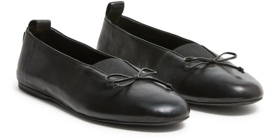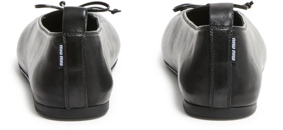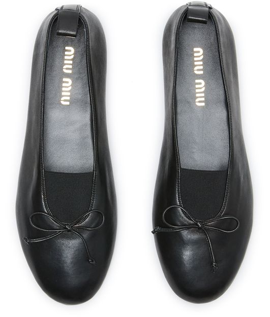 Reveal Miu Miu's leather ballet flats, crafted from smooth leather with a refined round toe and low, flat heel. Visible stitching and a gold-lettered logo at the back add signature flair, while the logo-printed insole ensures comfort and unmistakable brand recognition for every step.