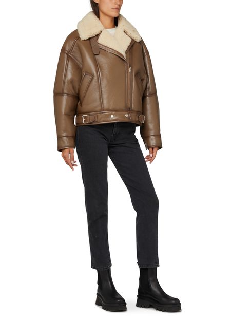 This leather jacket by Acne is a timeless addition to any wardrobe. Made from high-quality leather, it features a classic silhouette with a modern edge. The sharp design includes a button-up front, multiple pockets, and a comfortable fit. Pair it with anything from jeans to dresses for a stylish and versatile look.