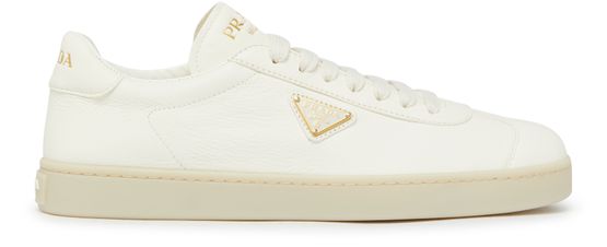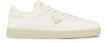 Step into sophistication with Prada's Leather sneakers, showcasing a round toe for a sleek profile. The logo on the tongue and printed logo on the side add a touch of elegance, while the logo at the back completes the refined look. Closed design ensures a snug fit for every occasion.